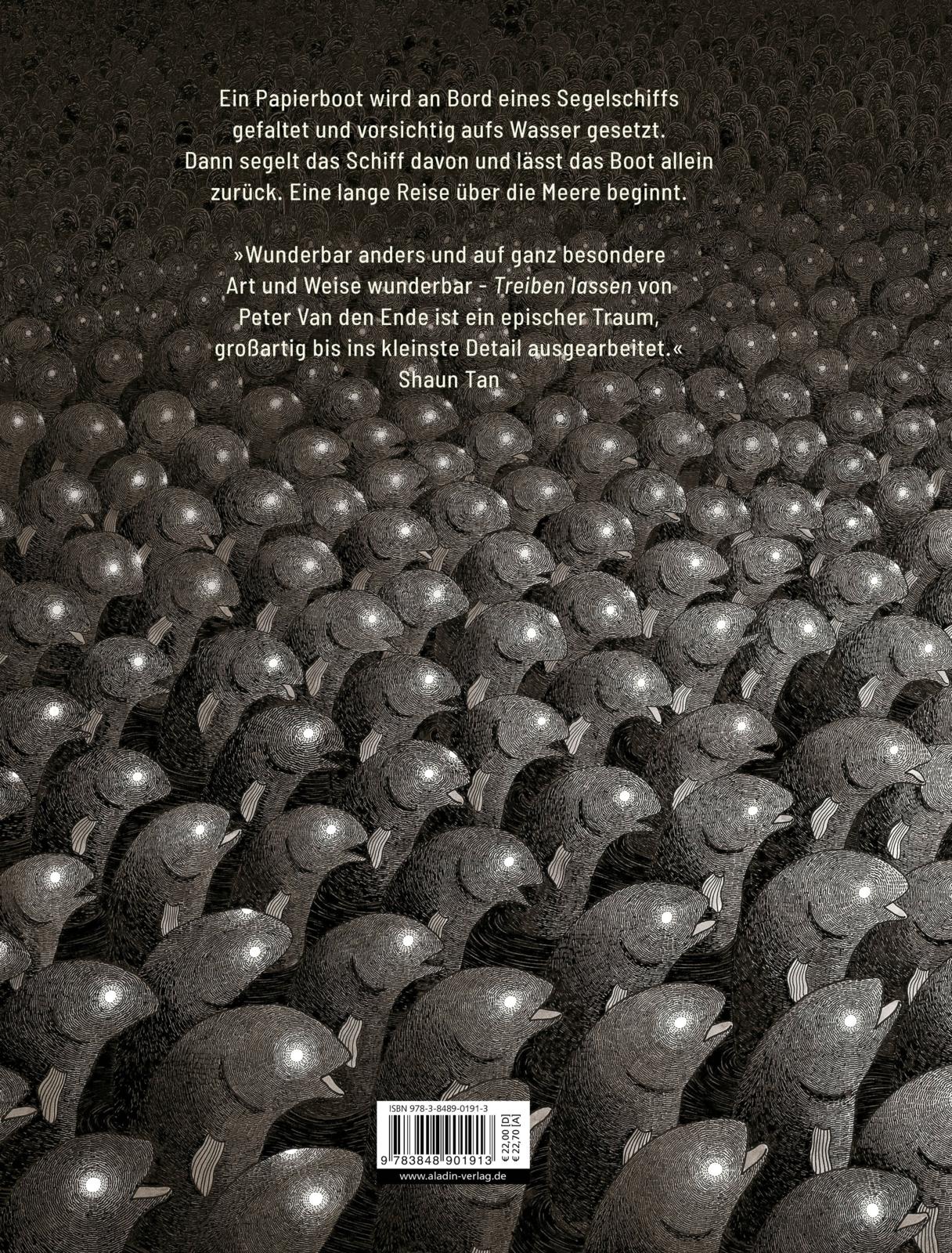Eine Fantasiereise ohne Worte für Groß und KleinEin Papierboot wird an Bord eines Segelschiffs gefaltet und vorsichtig aufs Wasser gesetzt. Dann segelt das Schiff davon und lässt das Boot allein zurück. Eine lange Reise über die Meere beginnt.„Wunderbar anders und auf ganz besondere Art und Weise wunderbar - ‘Treiben lassen‘ von Peter Van den Ende ist ein epischer Traum, großartig bis ins kleinste Detail ausgearbeitet.“ Shaun Tan