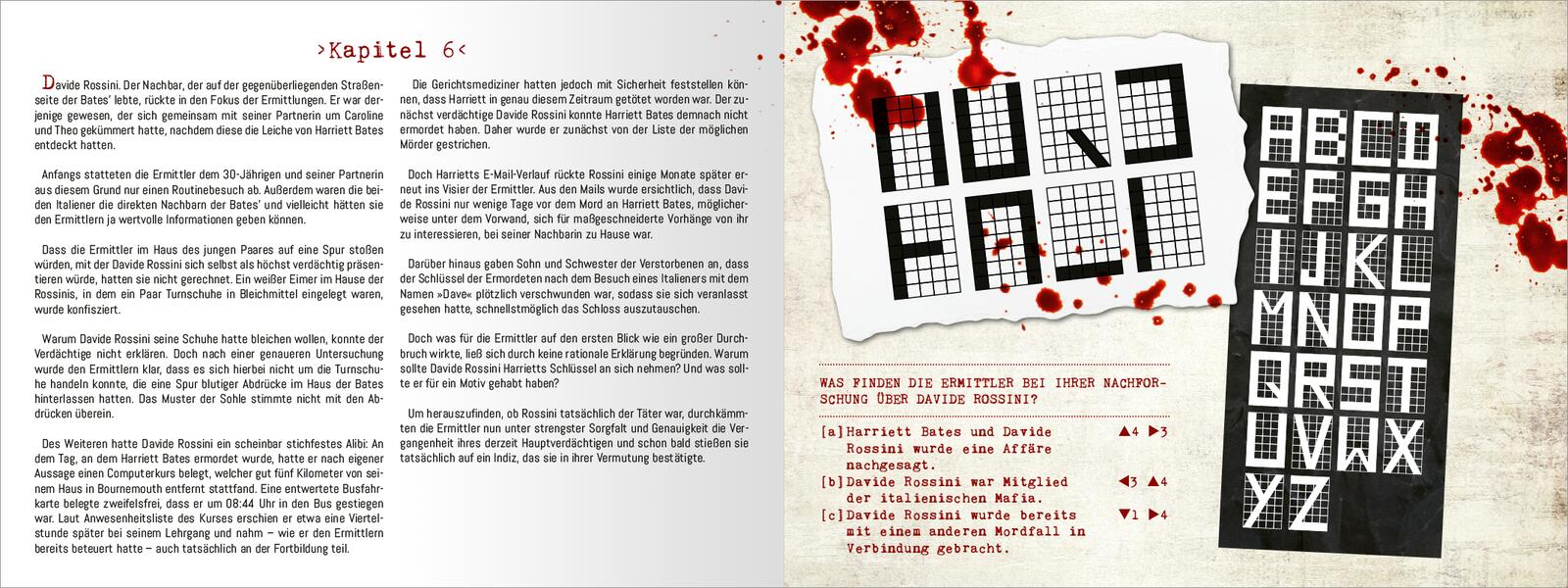 - Escape-Room-Spiel in Buchform: In jedem Kapitel verbirgt sich ein kniffliges Escape-Rätsel, das zum nächsten Kapitel führt