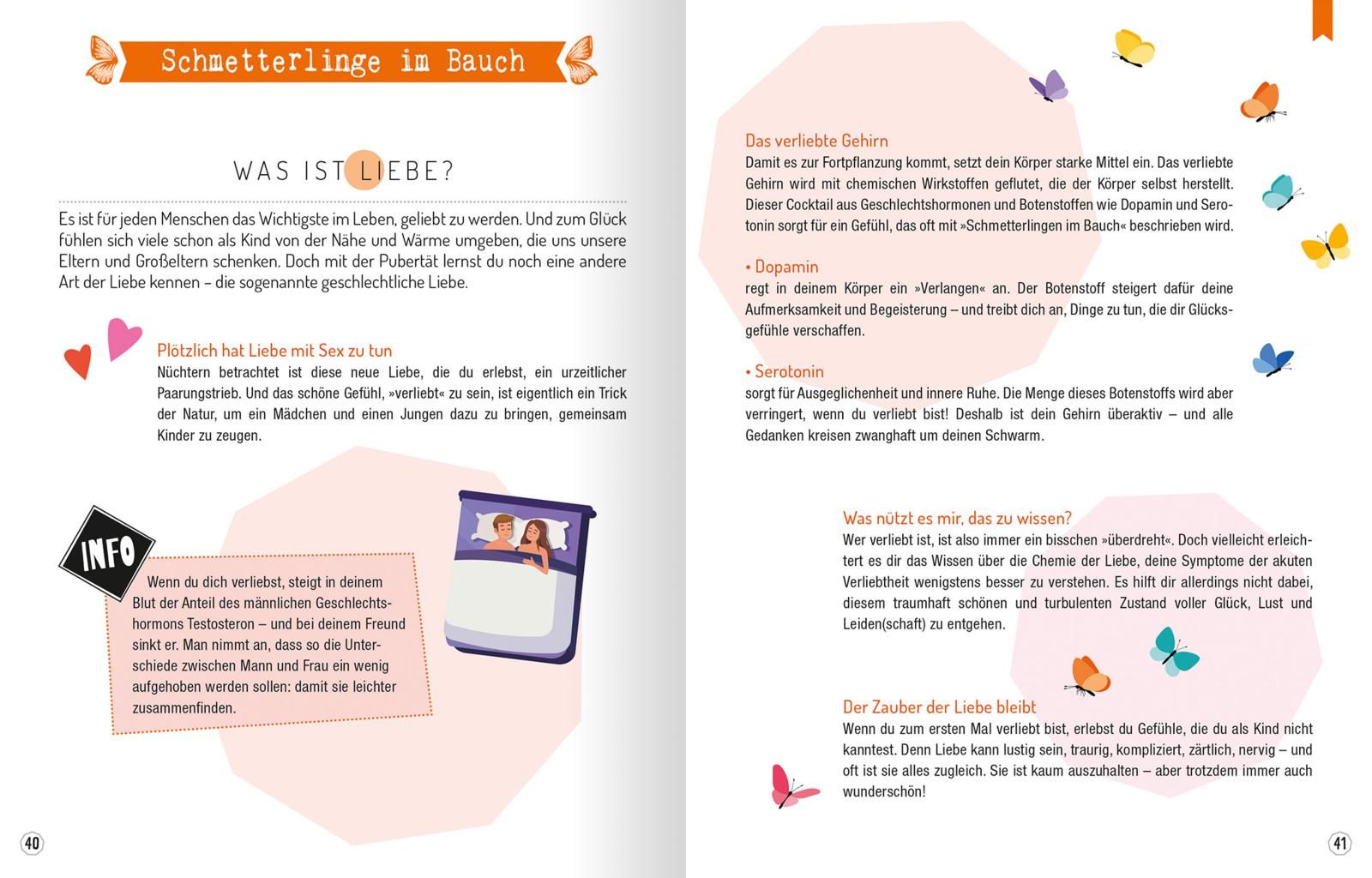 Die Pubertät ist eine Zeit des Umbruchs, aber nicht nur der Körper verändert sich, sondern auch die Gefühle, das Denken und die Beziehungen. Was heute noch nicht interessiert, kann schon morgen wichtig sein. In dieser besonderen Lebensphase rücken Themen wie Liebe und Sexualität für Mädchen in den Vordergrund. Dieses Buch beschreibt, wie es ist, wenn man vom Mädchen zur Frau wird. Alle wichtigen Aspekte, wie z. B. die Menstruation, der erste Sex, Verhütung, Verliebtsein, Coming out, werden ernsthaft, aber mit viel Gespür beschrieben.