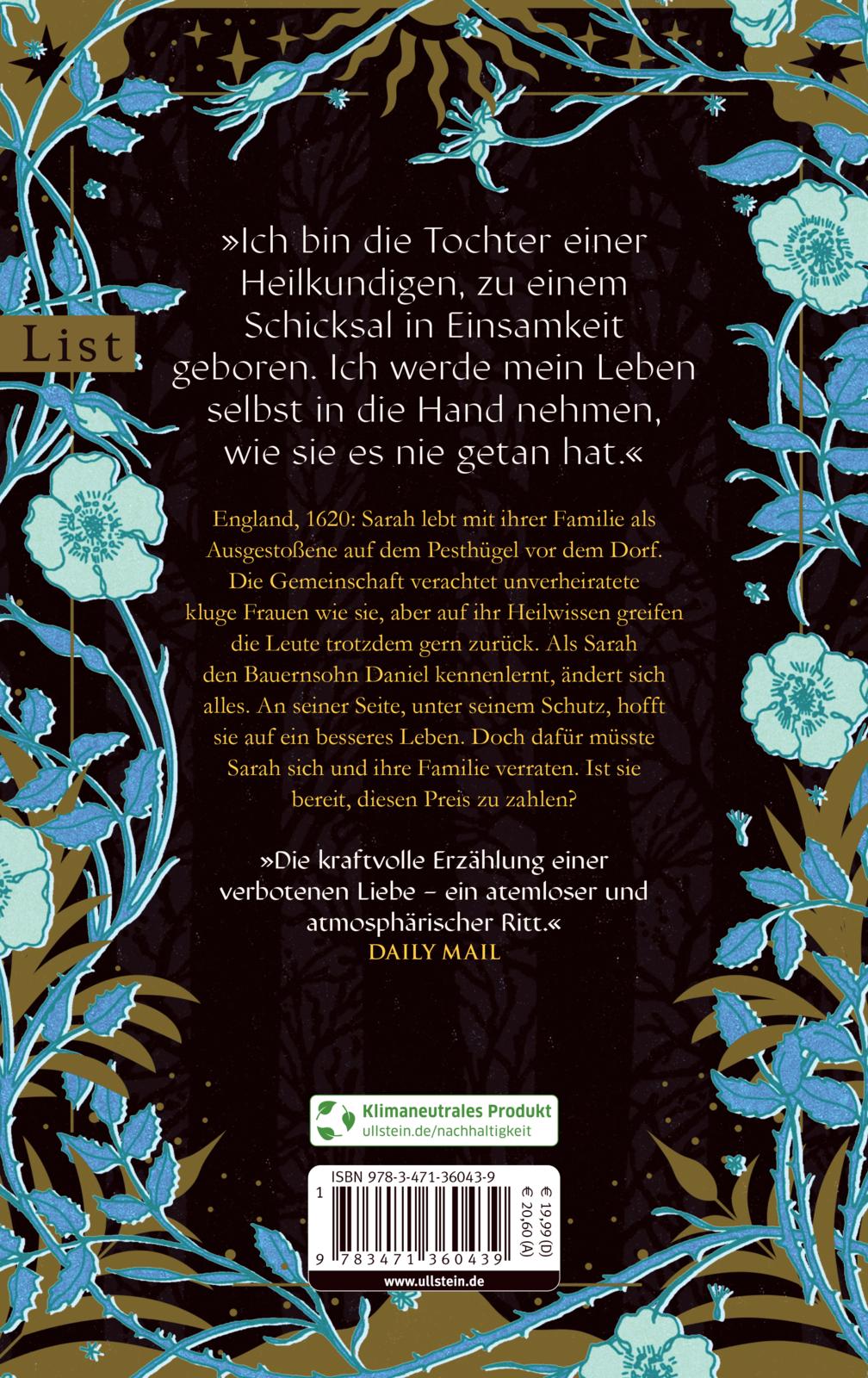 Lancashire, 1620: Die junge Sarah Haworth lebt mit ihrer Familie als Ausgestoßene auf dem Pesthügel vor dem Dorf. Die Gemeinschaft verachtet unverheiratete kluge Frauen wie sie, aber ihre Dienste – heilende Balsame, Kräutermittel – sind immer gefragt. Als Sarah den Bauernsohn Daniel kennenlernt, ändert sich alles. Er sieht in ihr nicht die wilde Außenseiterin, sondern eine starke junge Frau, die zu sich selbst findet. An seiner Seite, unter seinem Schutz, hofft Sarah auf ein besseres Leben. Doch als ein neuer Magistrat in die Gegend kommt und seltsame Todesfälle untersucht, nimmt die Hetze der Dorfbewohner zu. Und plötzlich hält auch Daniel eine brennende Fackel in der Hand …