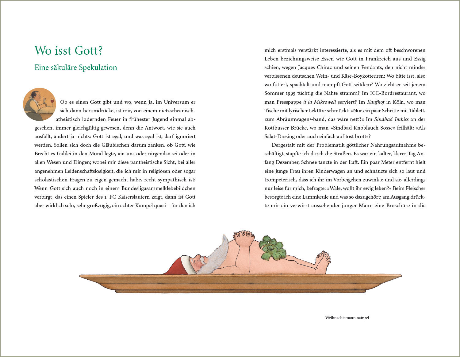 Zur Sache, Plätzchen: Nach dem Erfolg des schon heute legendären Standardwerks „Wurst" („Das beste Wurstbuch aller Zeiten", Focus) läuten nun die Weihnachtsglocken. Ein kochender Schreiber, ein schreibender Koch und ein hungriger Zeichner legen einen Sack voller Geschichten und Gerichten unter den Baum. „Weihnachten" schaut dem Nikolaus unter den Mantel, fährt an Heiligabend heim zu Mutti und erzählt von Glanzstunden und Schattenseiten des Lichterfestes: „Advent ist, wenn der Pfarrer schreit: Besinnlichkeit! Besinnlichkeit". Eine Sammlung schönster Weihnachtsrezepte hilft beim Warten aufs Christkind. Das Fest kann kommen.
