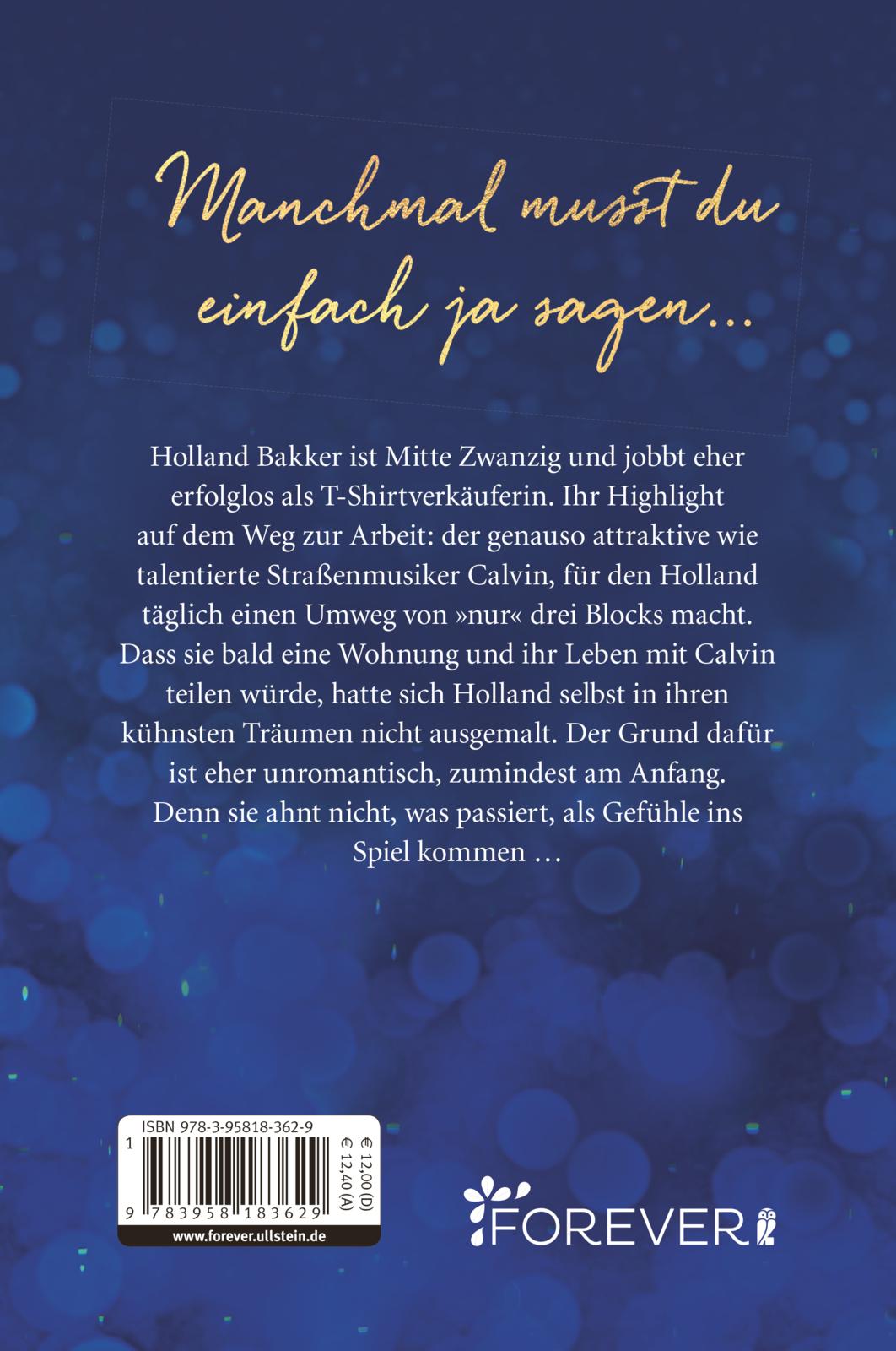 Holland Bakker ist Mitte Zwanzig und jobbt eher erfolglos als T-Shirtverkäuferin. Ihr Highlight auf dem Weg zur Arbeit: der genauso attraktive wie talentierte Straßenmusiker Calvin, für den Holland täglich einen Umweg von „nur“ drei Blocks macht. Dass sie aber bald eine Wohnung und ihr Leben mit Calvin teilen würde, hatte sich Holland selbst in ihren kühnsten Träumen nicht ausgemalt. Doch der Grund dafür ist eher unromantisch, zumindest am Anfang …