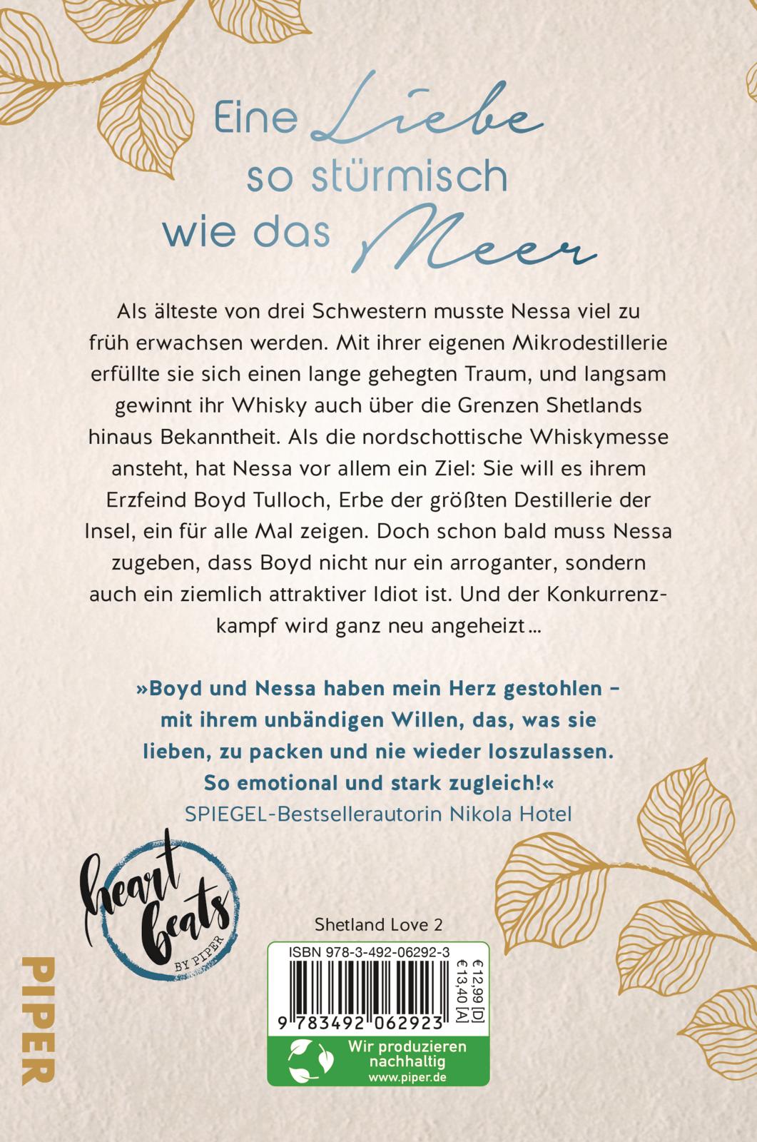 Als älteste von drei Schwestern musste Nessa viel zu früh erwachsen werden. Mit ihrer eigenen Mikrodestillerie erfüllte sie sich endlich einen Traum, und langsam gewinnt ihr Whisky auch über Shetland hinaus Bekanntheit. Als die nordschottische Whiskymesse ansteht, hat sie vor allem ein Ziel: Sie will es ihrem Erzfeind Boyd Tulloch, Erbe der größten Destillerie der Insel, ein für alle Mal zeigen. Doch schon bald muss Nessa zugeben, dass Boyd nicht nur ein arroganter, sondern auch ein ziemlich attraktiver Idiot ist. Und der Konkurrenzkampf wird ganz neu angeheizt.