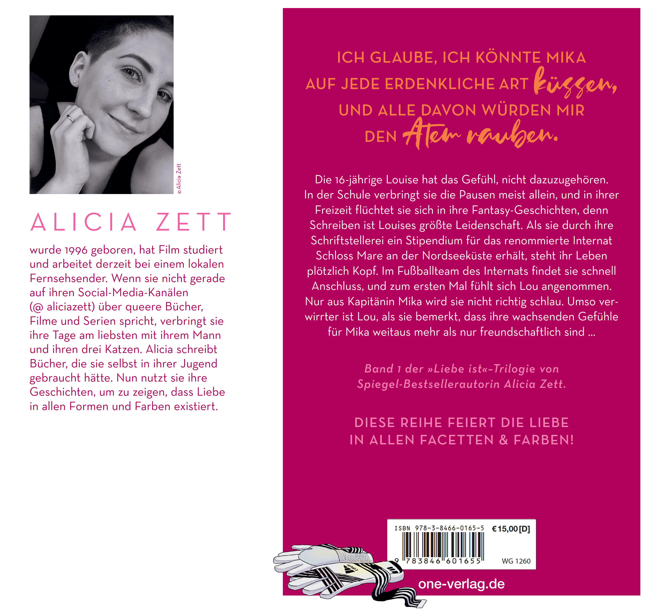 - Beschreibung Mit dieser Reihe (ab 14 Jahren) feiert Spiegel-Bestseller-Autorin Alicia Zett die Liebe in allen Facetten und Farben Die 16-jährige Louise hat das Gefühl, nicht dazuzugehören. In der Schule verbringt sie die Pausen meist allein, und in ihrer Freizeit flüchtet sie sich in ihre Fantasy-Geschichten, denn Schreiben ist Louises größte Leidenschaft. Als sie durch ihre Schriftstellerei ein Stipendium für das renommierte Internat Schloss Mare an der Nordseeküste erhält, steht ihr Leben plötzlich Kopf. Im Fußballteam des Internats findet sie schnell Anschluss, und zum ersten Mal fühlt sich Lou angenommen. Nur aus Kapitänin Mika wird sie nicht richtig schlau. Umso verwirrter ist Lou, als sie bemerkt, dass ihre wachsenden Gefühle für Mika weitaus mehr als nur freundschaftlich sind ... Eine mitreißende LGBTQIA+ Geschichte über Selbstfindung, Freundschaft und die Liebe zwischen zwei Mädchen, die im selben Fußballteam spielen. Nominiert für den DELIA-Literaturpreis in der Kategorie "Junge Liebe" Die Autorin auf Social Media: @aliciazett