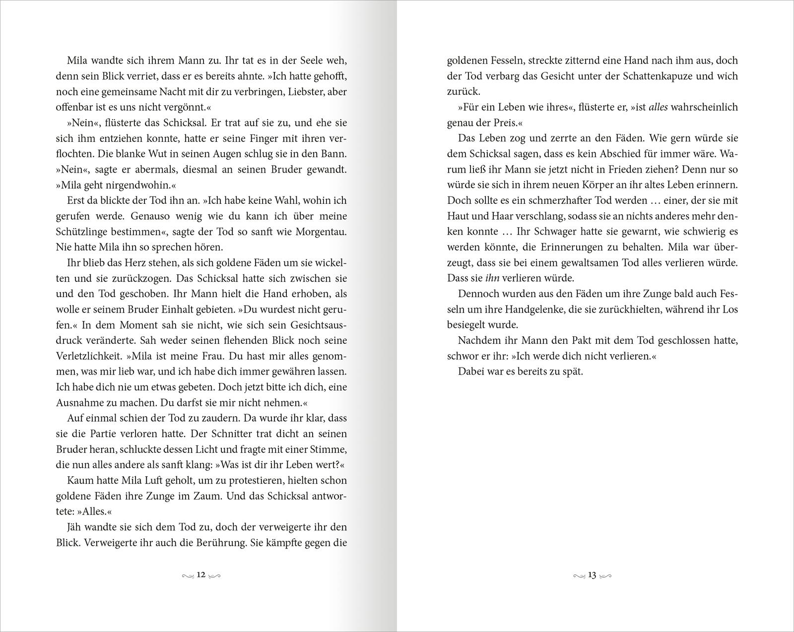 Seit das Schicksal in Signas und Blythes Leben getreten ist, hat sich die Welt der beiden unwiderruflich verändert. Während Signa um ihre Beziehung mit dem Tod kämpft, muss Blythe mit ihren neuen Fähigkeiten fertigwerden. Das Geheimnis um ihre wahre Identität lässt sie nicht ruhen. Ebenso wenig wie der Pakt, den sie mit dem Schicksal geschlossen hat. Der mysteriöse Mann lässt ihr Herz höherschlagen, doch kann sie ihm wirklich vertrauen?