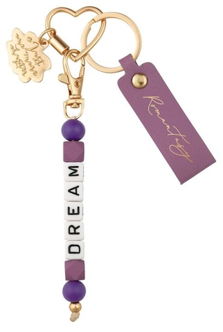 Trendige Begleiter – Schlüsselanhänger mit Botschaft Diese Schlüsselanhänger verbinden stylisches Design mit positiver Message. Buchstabenperlen mit Wörtern wie „LOVE" oder „DREAM" machen sie zu kleinen Glücksbringern für den Alltag. Farbige Perlen und ein Anhänger mit geprägtem Schriftzug runden den Look harmonisch ab. Der hochwertige Herzverschluss sorgt für eine besondere Note und macht das Anbringen am Schlüsselbund oder an der Tasche ganz einfach. Ein modernes Accessoire für alle, die kleine Details lieben.