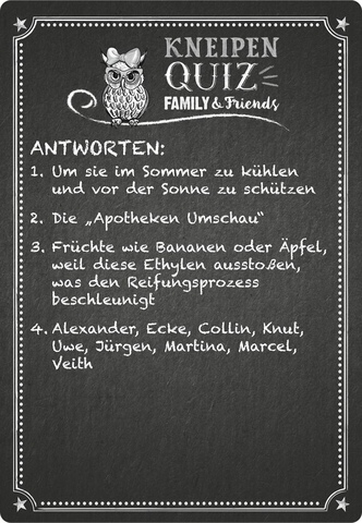 - Davon sind 4 Fragen normale Quizfragen und eine Frage ist die Family-and-Friends-Frage.