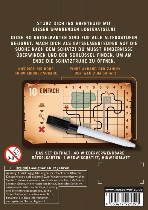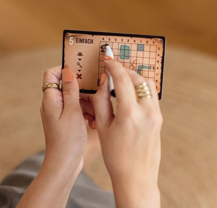 Dank des beiliegenden Wegwischstifts kannst du immer wieder neue Strategien ausprobieren – perfekt für Rätsel- und Abenteuerfans!