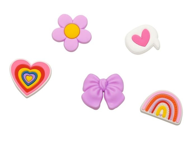 Dieses farbenfrohe Notizbuch ist ein echter Hingucker auf dem Schreibtisch. Der strukturierte Einband in Regenbogenfarben ist mit kleinen Herzausschnitten verziert und bietet Platz für fünf bunte Silikon-Charms, die ganz einfach aufgesteckt und beliebig umgesteckt werden können.