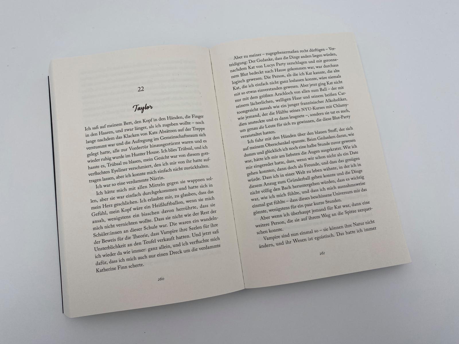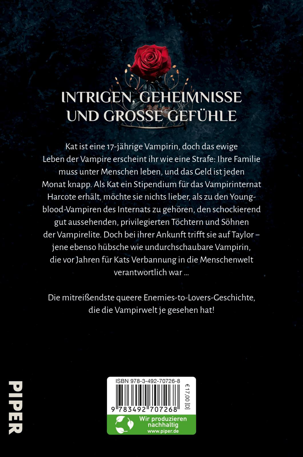 Kat ist eine 17-jährige Vampirin, doch das ewige Leben der Vampire erscheint ihr wie eine Strafe: Ihre Familie muss unter Menschen leben, und das Geld ist jeden Monat knapp. Als Kat ein Stipendium für das Vampirinternat Harcote erhält, möchte sie nichts lieber, als zu den Youngblood-Vampiren des Internats zu gehören, den schockierend gut aussehenden, privilegierten Töchtern und Söhnen der Vampirelite. Aber bei ihrer Ankunft am Internat trifft sie auf Taylor − jene ebenso hübsche wie undurchschaubare Vampirin, die vor Jahren für Kats Verbannung in die Menschenwelt verantwortlich war …