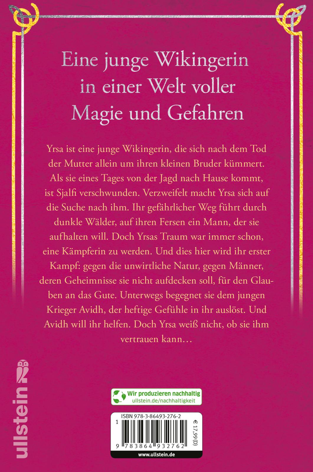 Yrsa ist eine junge Wikingerin, die sich seit vier Jahren allein um ihrem Bruder Sjalfi kümmert. Schmerzvoll haben die beiden ihre Mutter verloren. Als Yrsa eines Tages von der Jagd nach Hause kommt, ist Sjalfi verschwunden. Verzweifelt macht sie sich auf die Suche und den gefährlichen Weg nach Haithabu: durch dunkle Wälder, auf ihren Fersen ein Mann, der sie aufhalten will. Doch Yrsas Traum war immer schon, eine Kämpferin zu werden. Und dies hier wird ihr erster Kampf sein: gegen die unwirtliche Natur, gegen Männer, deren Geheimnisse sie nicht aufdecken soll, für den Glauben an das Gute. Und für die Liebe zu dem jungen Krieger Avidh.
