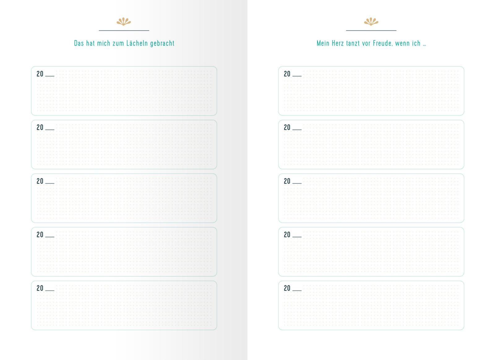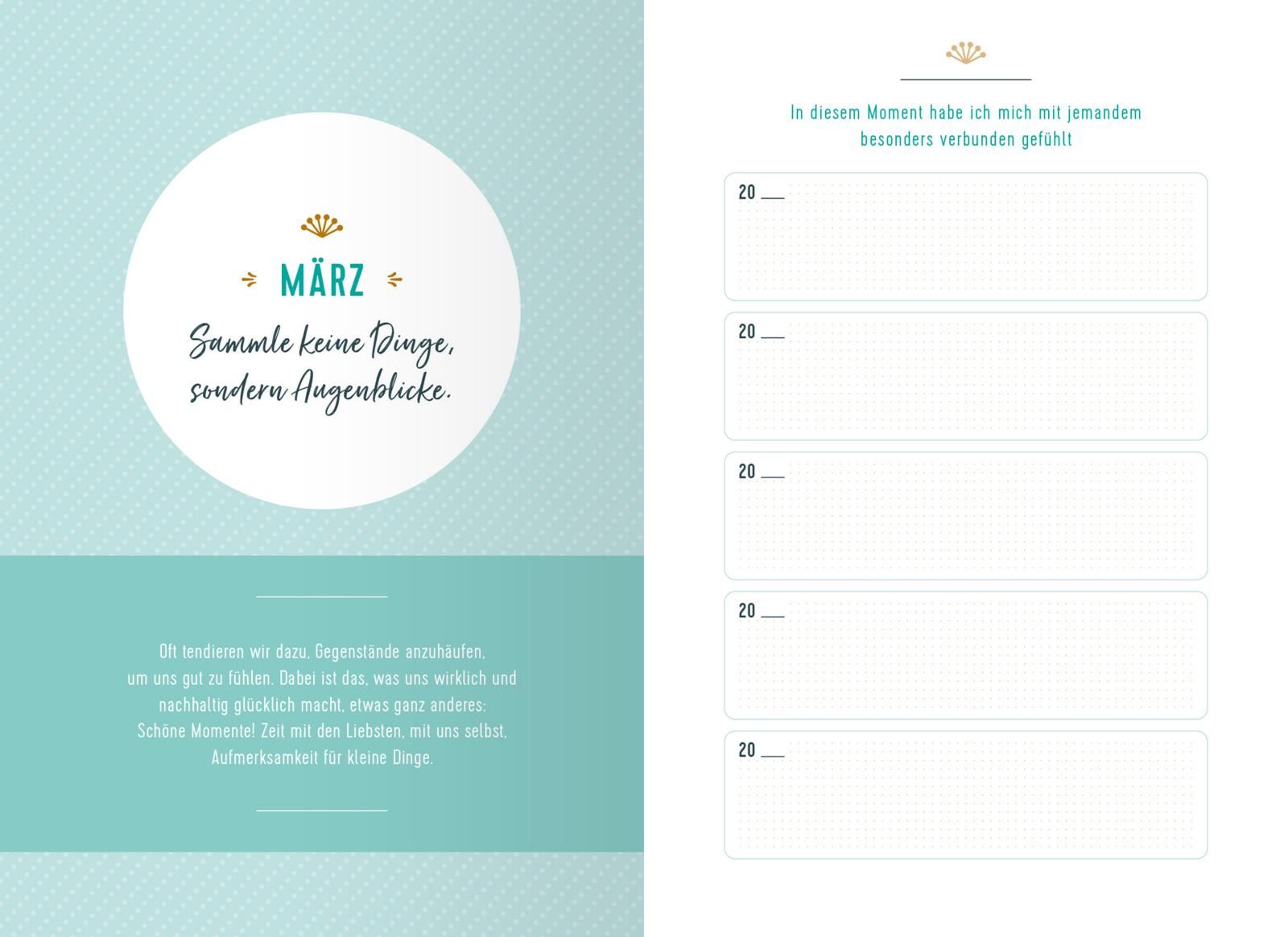 Es begleitet dich über 5 Jahre und hilft dir dabei, das kleine Glück im Alltag zu entdecken und all deine Lieblingsmomente festzuhalten.