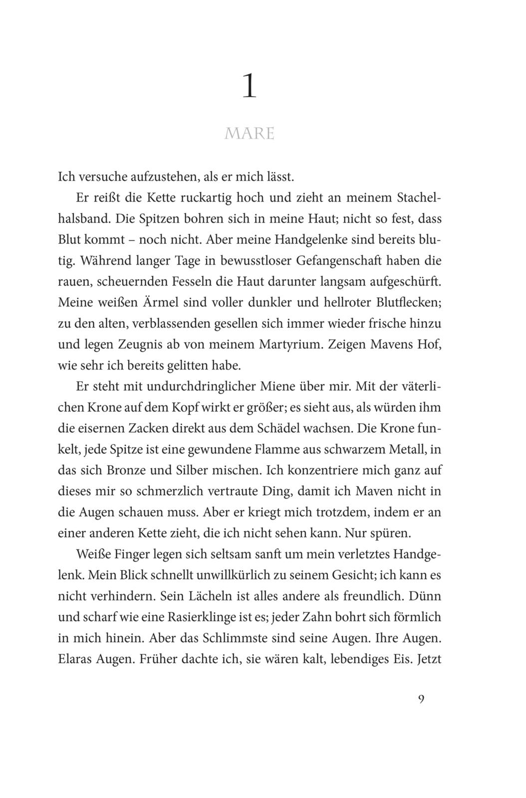 Mare, die Rote mit den besonderen Silber-Fähigkeiten, ist zurück am königlichen Hof – doch dieses Mal nicht als falsche Prinzessin, sondern als Gefangene des Königs: Um ihre Gefährten vor dem Tod zu retten, hat sie sich ihrem schlimmsten Feind – und einstigen Freund – ergeben. Und erwartet nun ein schreckliches Schicksal an seiner Seite. Aber natürlich setzen Prinz Cal und die Rebellen der Scharlachroten Garde alles daran, um die Blitzwerferin zu befreien. Denn nur mit ihr gibt es im Kampf um die Freiheit eine Chance.