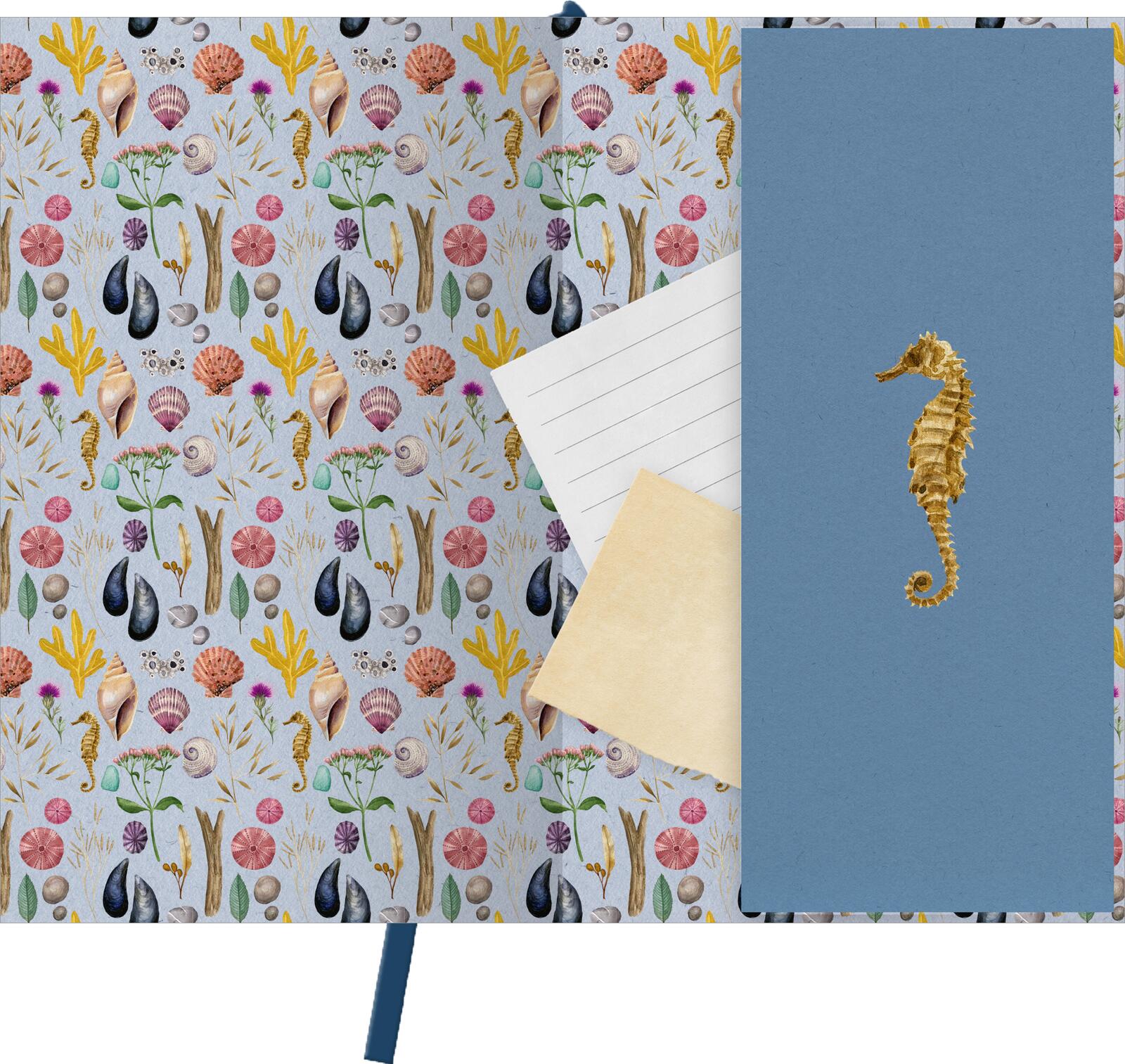 Extra kleines Notizbuch mit Einstecktasche – Naturschätze: Strand & Meer (dunkelblau)